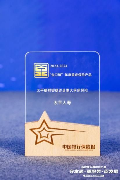 近日,由《中國銀行保險報》主辦的第53期保險熱點對話舉辦,保險機構(gòu)、高校學者圍繞“新時代下的保險產(chǎn)品:守本源 重服務(wù) 促發(fā)展”這一主題建言獻策?;顒又邪l(fā)布了2023-2024“金口碑”年度保險產(chǎn)品名單,太平人壽“太平歲歲鑫享終身壽險”“太平福祿御禧終身重大疾病保險”“太平傳世四號教育年金保險”等多款產(chǎn)品入選,榮獲年度壽險保險產(chǎn)品、年度重疾保險產(chǎn)品、年度創(chuàng)新保險產(chǎn)品等殊榮。