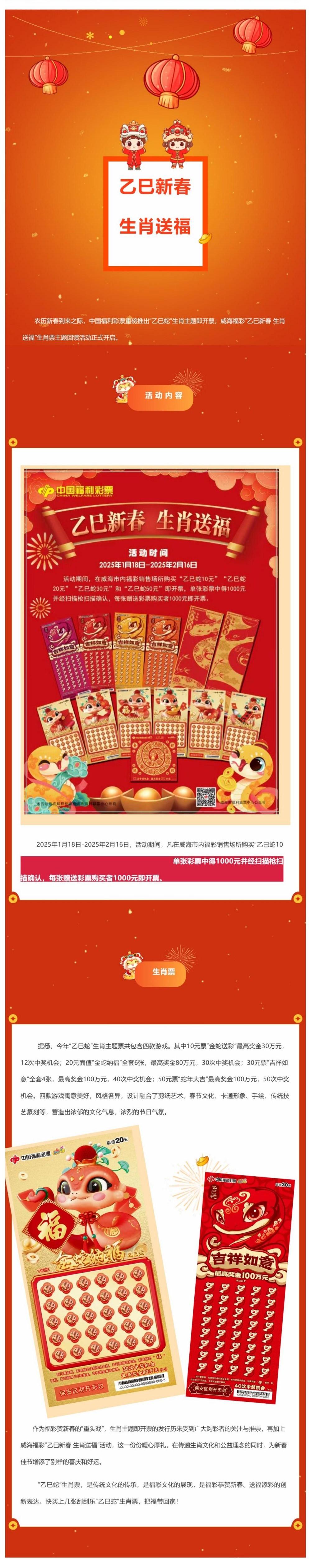 “乙巳新春 生肖送福”威海福彩刮刮樂新春大回饋
