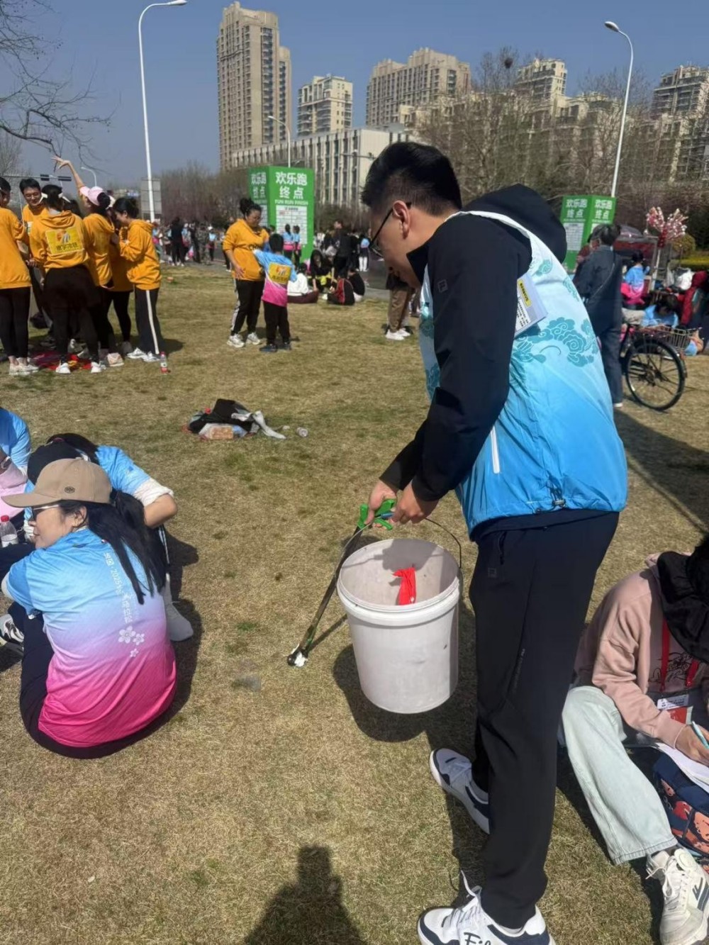 志愿者們分工明確,在賽事現(xiàn)場協(xié)助主辦方維持秩序,確保每一位參賽者都能擁有良好的比賽體驗(yàn)。他們還主動承擔(dān)起清理現(xiàn)場垃圾的任務(wù),用實(shí)際行動守護(hù)城市的美麗環(huán)境。無論是草地上的紙屑還是跑道旁的廢棄物,都逃不過志愿者們敏銳的眼睛。