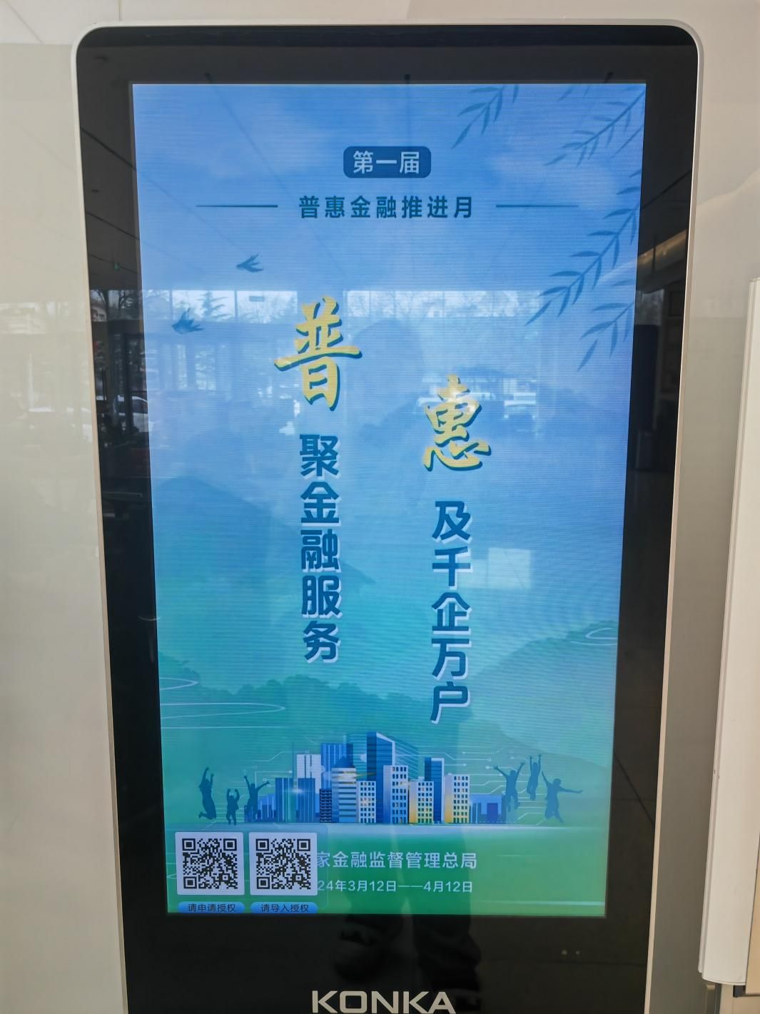 圍繞“普聚金融服務(wù),惠及千企萬戶”活動主題,在轄內(nèi)多個網(wǎng)點電子屏統(tǒng)一布放國家金融監(jiān)管總局下發(fā)的宣傳海報,LED屏滾動播放“普惠金融推進(jìn)月”、“普聚金融服務(wù),惠及千企萬戶”等宣傳信息,通過多種形式的宣傳活動,積極對接市場主體和人民群眾金融需求,宣傳介紹普惠金融政策和產(chǎn)品,以高質(zhì)量的金融服務(wù),為服務(wù)實體經(jīng)濟(jì)發(fā)展貢獻(xiàn)招行力量!