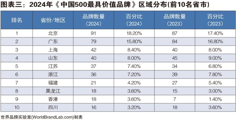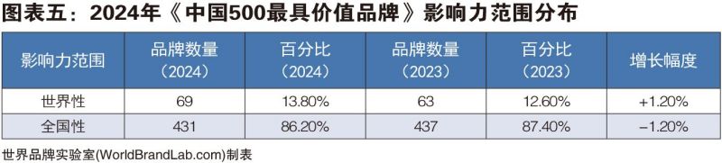 據(jù)世界品牌實(shí)驗(yàn)室的專家組分析,一個(gè)區(qū)域的競(jìng)爭(zhēng)實(shí)力,主要取決于其比較優(yōu)勢(shì),而品牌效益直接影響著地區(qū)比較優(yōu)勢(shì)的形成和發(fā)展。品牌是一個(gè)地區(qū)發(fā)展的重要標(biāo)志,品牌與區(qū)域經(jīng)濟(jì)的增長(zhǎng)是相互聯(lián)動(dòng)的。從本屆《中國(guó)500最具價(jià)值品牌》區(qū)域分布來(lái)看,北京有91個(gè)品牌入選,名列第一,因?yàn)橼A利能力強(qiáng)的央企總部集中在北京;廣東和上海分別有79個(gè)和42個(gè)品牌入選,位居第二和第三。根據(jù)入選品牌影響力范圍大小,可按照全國(guó)性、世界性品牌進(jìn)行劃分。榜單中具有全國(guó)范圍影響力的品牌有431個(gè),占86.20%;具有世界性影響力的品牌數(shù)為69個(gè),占13.80%。